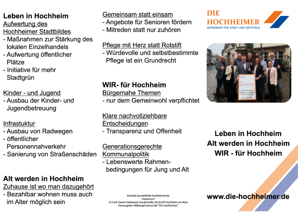 Dabei setzen wir auf Offenheit, Dialog und eine gute Zusammenarbeit. Wir freuen uns auf den Austausch mit Bürgerinnen und Bürgern, Vereinen, Initiativen sowie allen demokratischen Kräften in unserer Stadt.